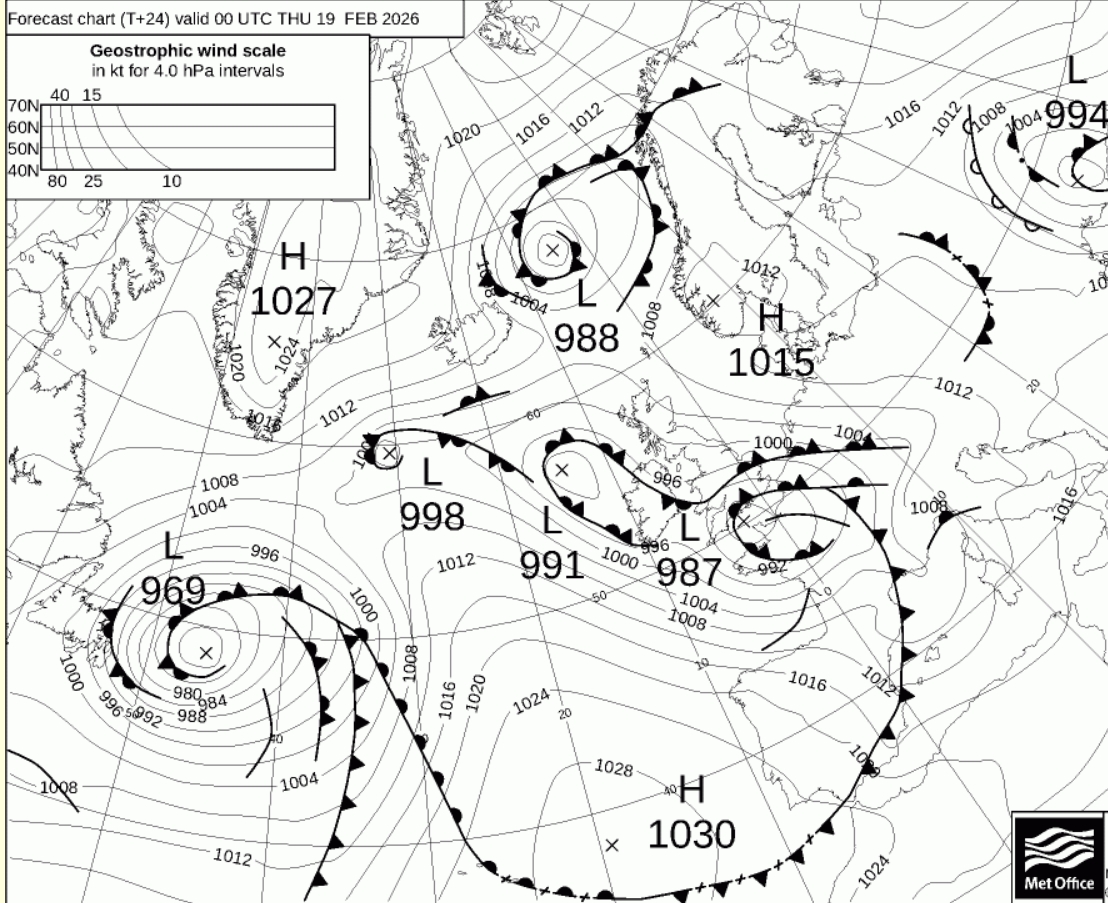 Donderdag komt de kern van het laag dichtbij België te liggen, waardoor de wind er daar einde middag er uit gaat en de NO swell mooi kan doorkomen. Vandaag (woensdag) is het daar net ff wat minder, want de hoogte valt tegen. Eigenlijk overal door die lange periode, hoewel Z-H en N-H er nog goed uit zien voor later in de ochtend en de middag.